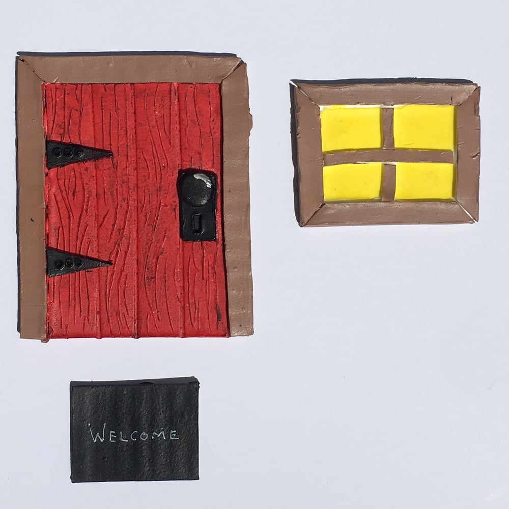 Dimensions: Door 3x4 inches, Window: 2.5x3 inches, Doormat: 1x1.75 inches
